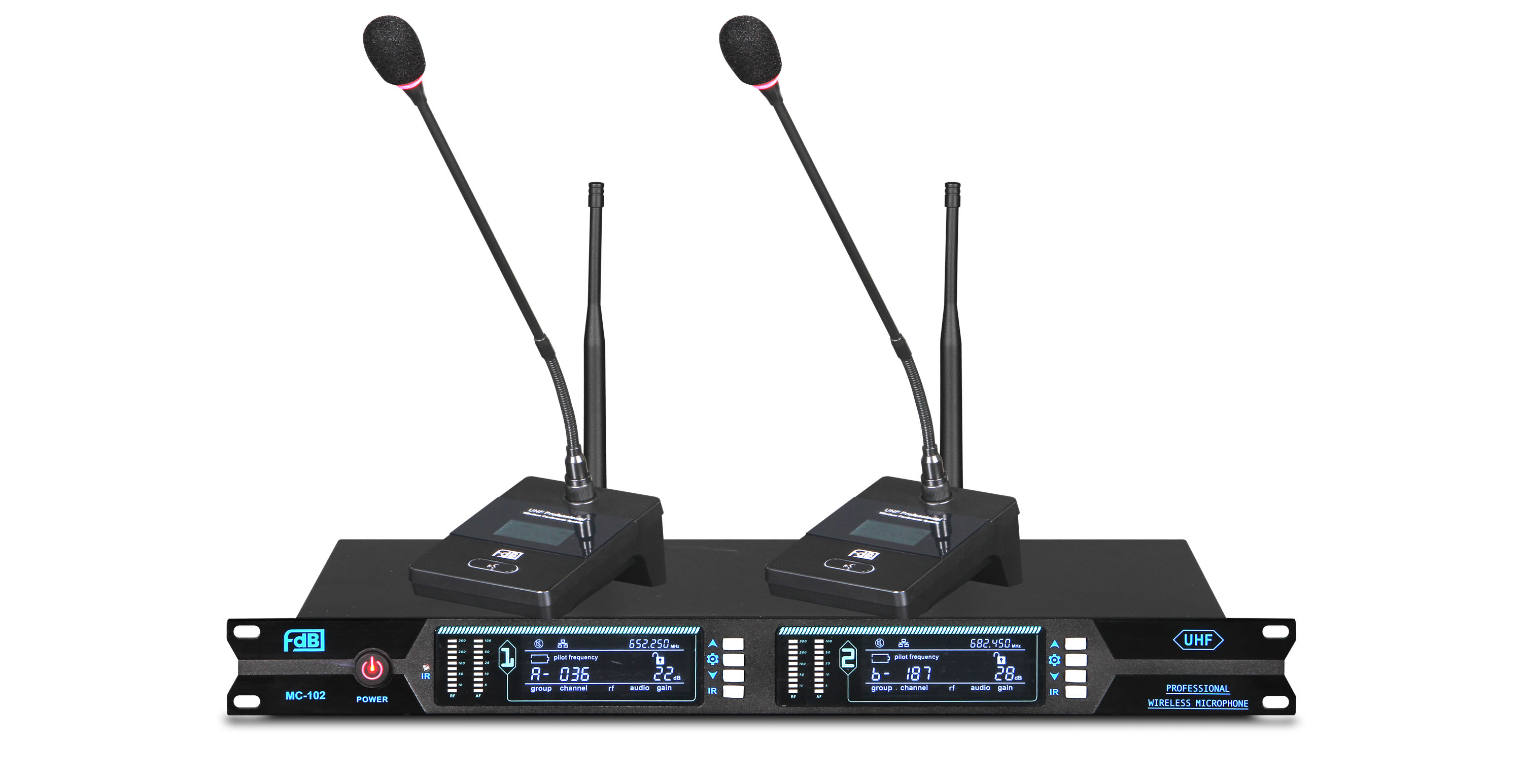 MC-102分別是一款一拖二無線會議系統。采用UHF超高頻段傳輸,DPLL數字鎖相環多信道頻率合成技術,使傳輸更可靠,抗干擾能力更強。方便多套機器同時使用,輕松避開各類干擾。本系統操作簡便,安裝方便,經濟適用,是會議工程的好選擇。