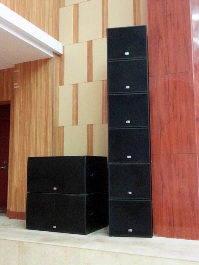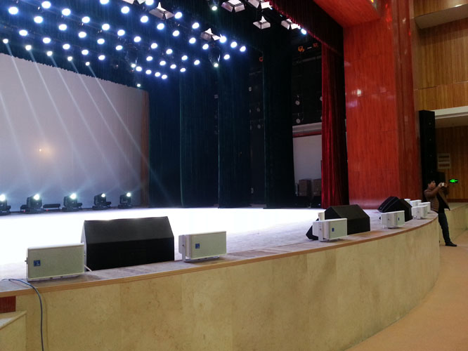 FDB團隊以人為本,切實立足廣大職工的真實需要,為廣大職工提供一個功能齊全實用、環境優雅的觀演場所。在對劇場的進行了多次實地考察,主擴音箱選用了FDB LT715,LT715是一款嚴格三分頻的15寸中遠程一體化線性音箱。具有優秀的投射能力,順滑的功率響應,出色的音質,高聲壓級輸出等特點,為需要線陣效果又不方便吊掛的場合提供了完美的替代方案。在劇場兩邊,一邊壘加六只,再配搭兩只雙十八的超重低音,形成6+2的組合,完美的解決了劇場的擴聲需求。