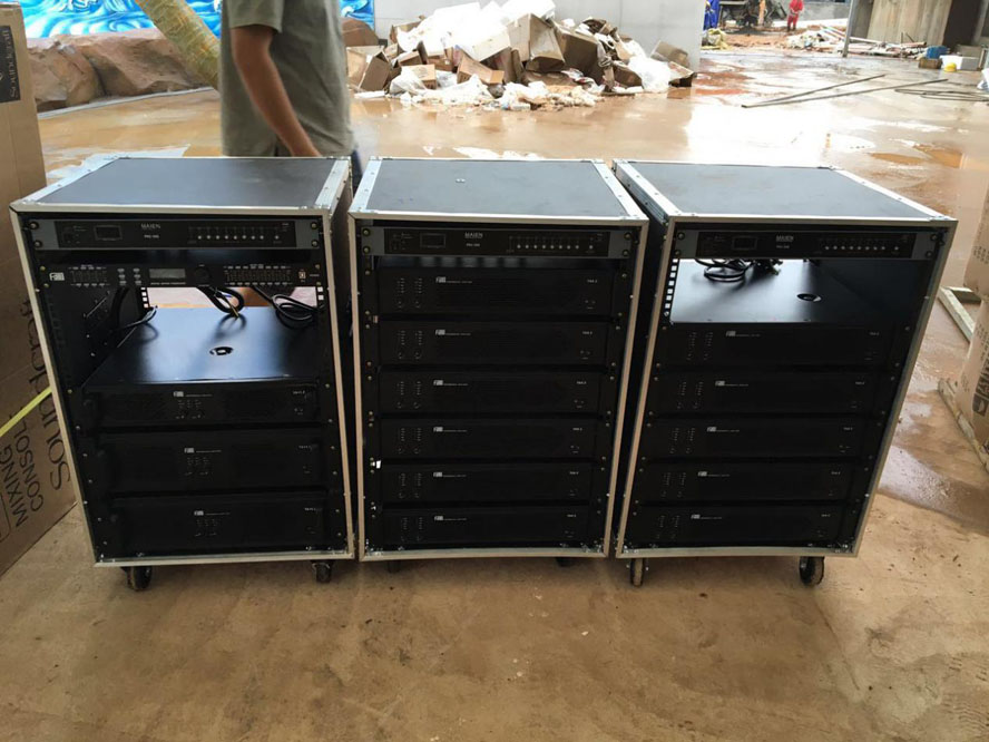 超低音擴聲系統在舞臺下側放置了4只U218BII雙18寸超低音箱。采用兩只18寸100芯低音單元,倒相式設計低音強勁自然。