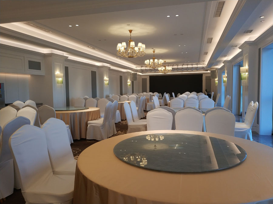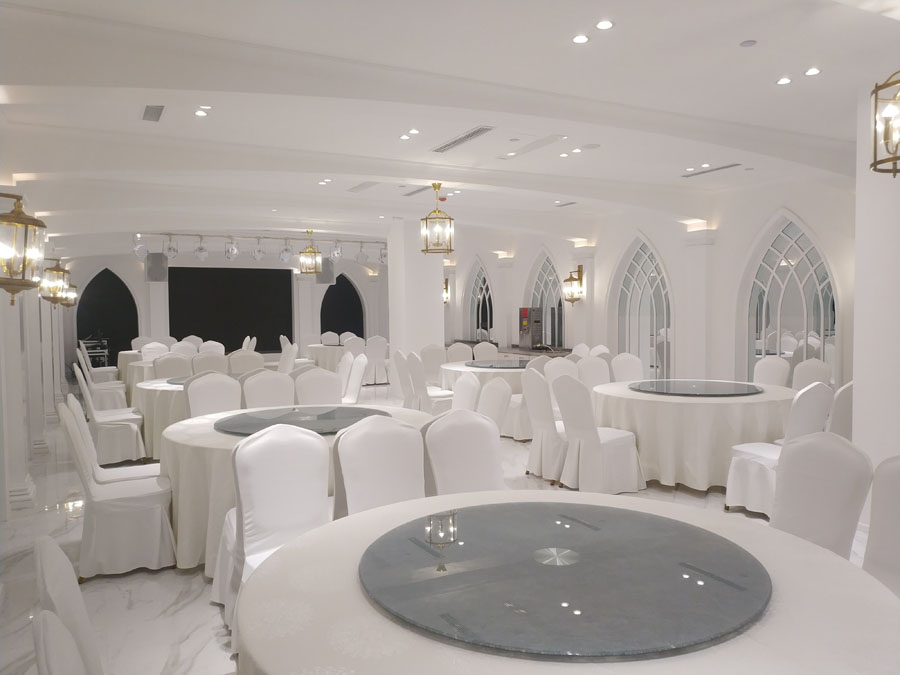 相對與古典和奢華,現代簡約營造與傳承的是一種浪漫的氣質,一種品味,也是一種情懷。香榭麗舍宴會廳主擴聲音箱選用定制的白色U115V音箱。